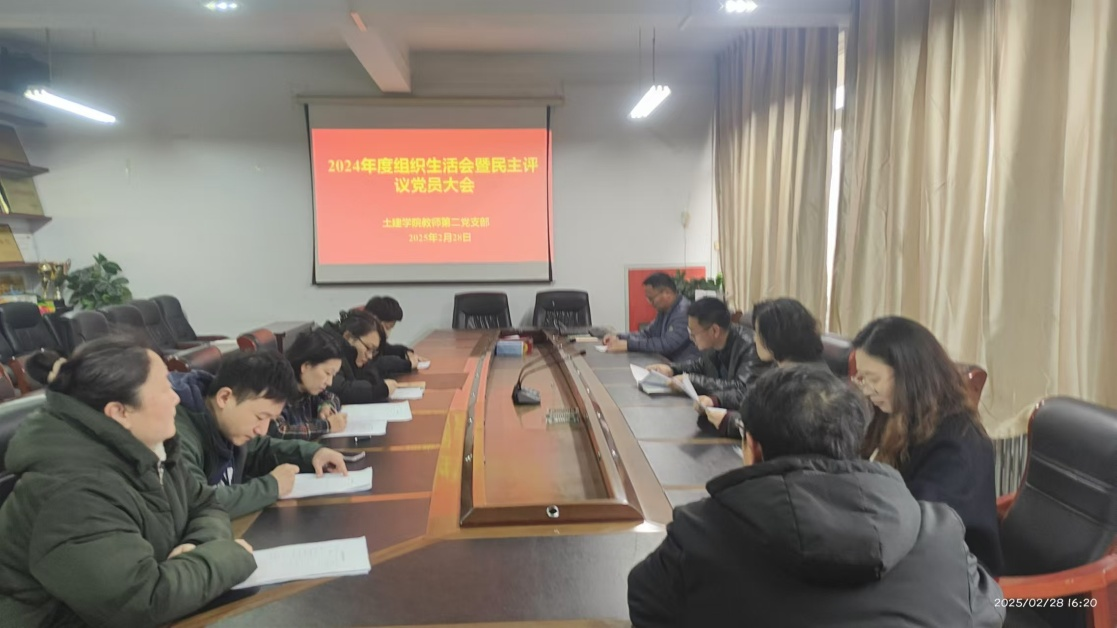 2025年2月28日,beat365中文官网教师第二党支部在A09-314召开2024年度组织生活会暨民主评议党员大会。党支部书记韩洪兴主持会议,党委宣传委员马芸到会督导,支部全体党员参会。
