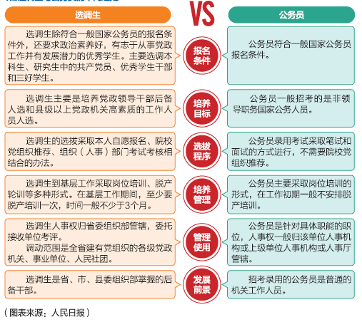 选调生,是各省区市党委组织部门有计划地从高等院校选调品学兼优的应届大学本科及其以上毕业生,选拔具有2年以上基层工作经历的老员工 “村官 ” 到基层工作,并作为党政领导干部后备人选和县级以上党政机关高素质的工作人员人选进行培养,经过考试直接录用为公务员,直接进入地方基层党政部门工作。