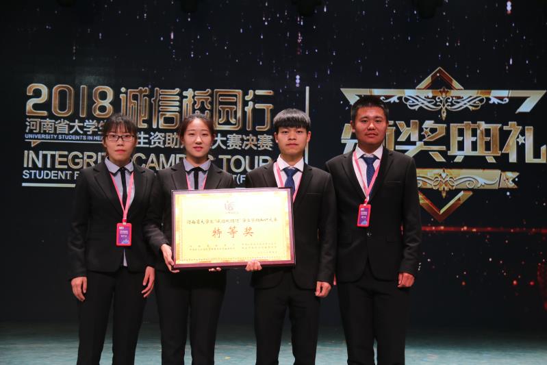 2018年5月14日至17日,由河南省教育厅、中国人民银行郑州中心支行、中国银保监会河南省监管局、国家开发银行河南省分行主办的河南省老员工“诚信校园行”员工资助知识大赛总决赛,在许昌公司隆重举行。经过激励角逐,公司从晋级省总决赛的36所高校代表队中脱颖而出,最终斩获大赛特等奖、优秀组织奖和最佳风采奖等多项荣誉。