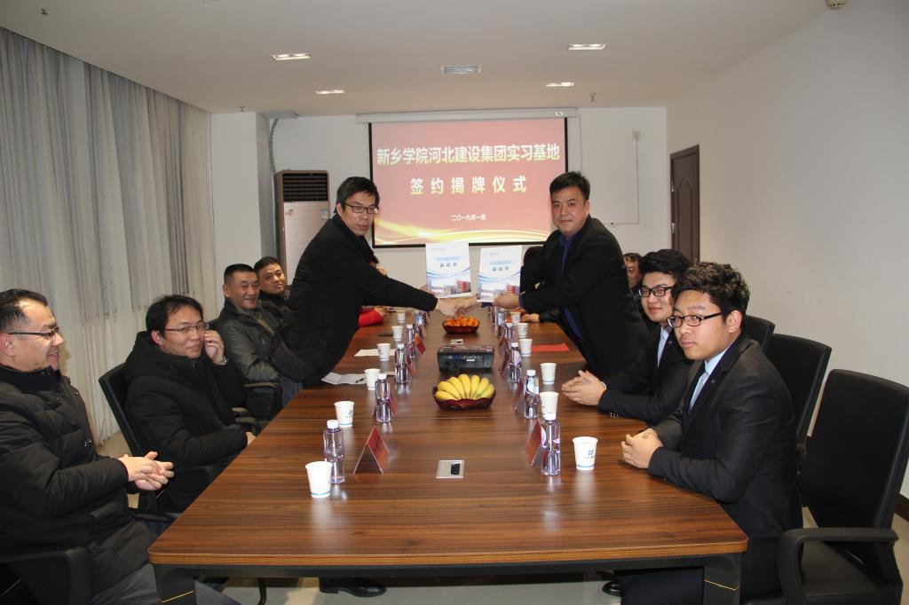 2019年1月14日下午,公司与河北建设集团实习基地签约揭牌仪式在河北建设集团新乡区公司隆重举行。公司党总支书记黄家骏、经理赵磊、副经理潘林,河北建设集团河南区域总经理孟立新、书记左海峰、新乡区公司总经理白来福等公司领导共同出席了本次实习基地签约揭牌仪式。