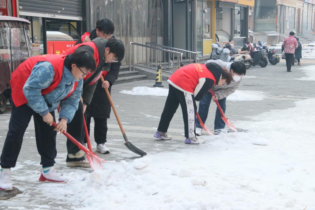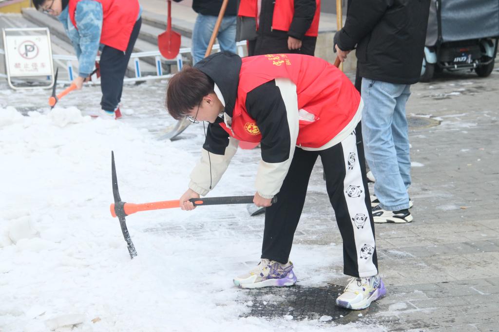 下午三点,志愿者迅速集合,并明确分工工作。他们手持铁锹、扫把,积极清理积雪,铲除冰层。面对寒冷的天气,志愿者们齐心协力,热情高涨,争分夺秒将积雪铲除干净,为居民群众清理出一条条便利出行的通道,保障了群众的出行安全。他们忙碌的身影成了社区里面一道靓丽的风景线,过往居民无不为其点赞。此外,志愿者们还积极向社区居民强调生活垃圾分类的重要性,并分享正确的生活垃圾分类方法。同时,他们还为社区居民提供手机软件安全咨询等服务,帮助他们解决实际困难。