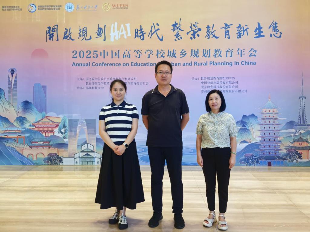 2025年6月27日至29日,聚焦人工智能与数字技术深刻变革下的城乡规划教育需求与发展,中国高等公司城乡规划教育年会在苏州隆重召开。本次年会以“开启规划HAI时代,繁荣教育新生态”为核心主题,beat365中文官网杨瑞强、黄艳丽、许玲玲老师参加会议,学习新形势下城乡规划教育发展的历史使命与创新路径。