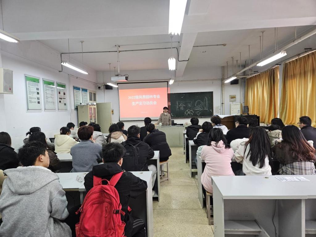 为明确生产实习任务,确保实习工作有序开展,风景园林教研室于2025年11月14日下午在A09-207顺利召开了2022级风景园林专业生产实习动员会。风景园林专业教研室主任庄静静老师和公司实验室管理科主任王晓冰老师出席会议并作动员讲话,2022级风景园林专业全体员工参加会议。
