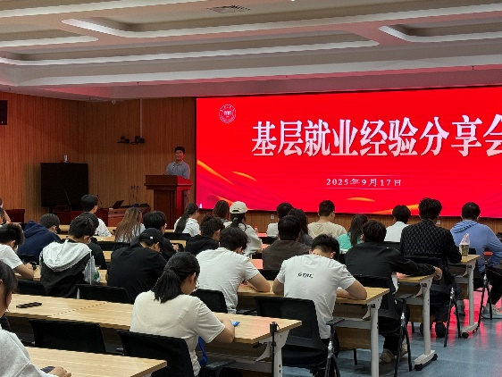 朱向辉还参加了就业中心举办的基层就业经验分享会,结合自身经历解答学弟学妹关于就业政策、岗位适应的疑问。他鼓励大家胸怀天下,勇于打破就业地域局限,将个人理想融入国家发展,扎根祖国最需要的地方埋头苦干,实现新时代新青年的人生价值,引发在场员工强烈共鸣。